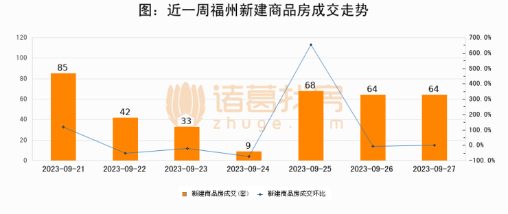 根据福州市不动产登记和交易中心数据显示,2023年09月27日福州新建商品房成交64套,较昨日持平