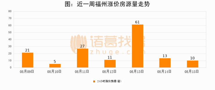 根据诸葛找房数据显示,福州24小时涨价房源量为10套,较08月14日减少3套,环比下降23.1%。与此同时,涨价房源占比小幅回落,对于购房者来说是一个入市窗口期,购房者可抓住时机入市。
