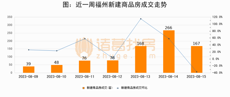 【福州成交日报】08月15日新房成交167套;涨价房源10套