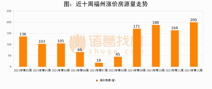 从调价房源来看,第11周福州涨价房源200套,较上周上涨22%。与此同时,11周涨价房源占比提升0.89个百分点,业主信心持续恢复。