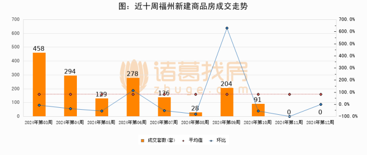 进入2024年第11周(03月11日-03月17日),福州新建商品房成交0套,较上周持平