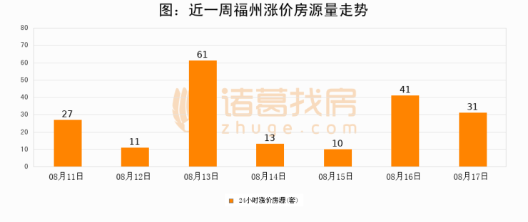 根据诸葛找房数据显示,福州24小时涨价房源量为31套,较08月16日减少10套,环比下降24.4%。与此同时,涨价房源占比小幅回落,对于购房者来说是一个入市窗口期,购房者可抓住时机入市。