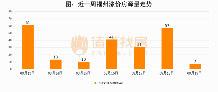 根据诸葛找房数据显示,福州24小时涨价房源量为7套,较08月18日减少50套,环比下降87.7%。与此同时,涨价房源占比小幅回落,对于购房者来说是一个入市窗口期,购房者可抓住时机入市。