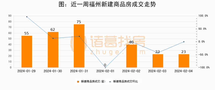 根据福州市不动产登记和交易中心数据显示,2024年02月04日福州新建商品房成交23套,较昨日持平