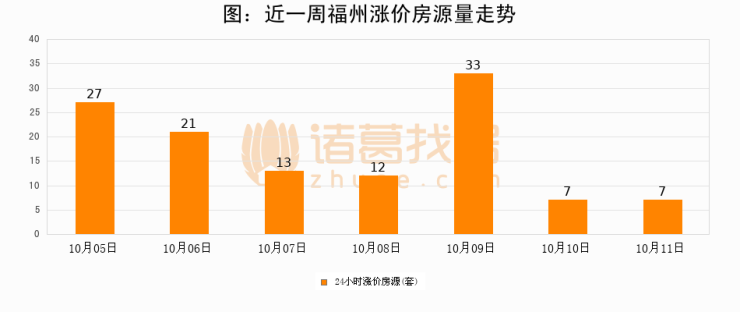根据诸葛找房数据显示,福州24小时涨价房源量为7套,较10月10日持平。