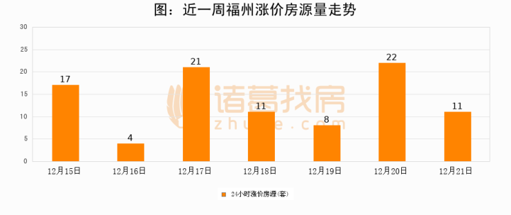 根据诸葛找房数据显示,福州24小时涨价房源量为11套,较12月20日减少11套,环比下降50%。与此同时,涨价房源占比小幅回落,对于购房者来说是一个入市窗口期,购房者可抓住时机入市。