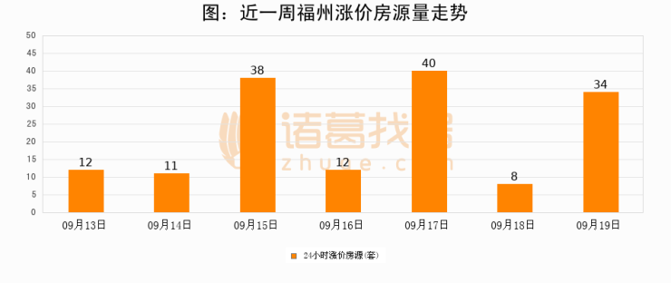 根据诸葛找房数据显示,福州24小时涨价房源量为34套,较09月18日增加26套,环比上涨325%。与此同时,涨价房源占比小幅扩大,业主信心有所提升。